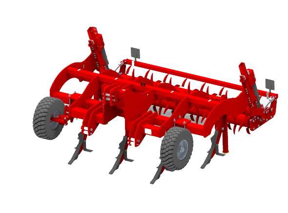 Глубина обработки регулируется спереди опорными колесами, сзади задними опорными катками с гидравлическим приводом.